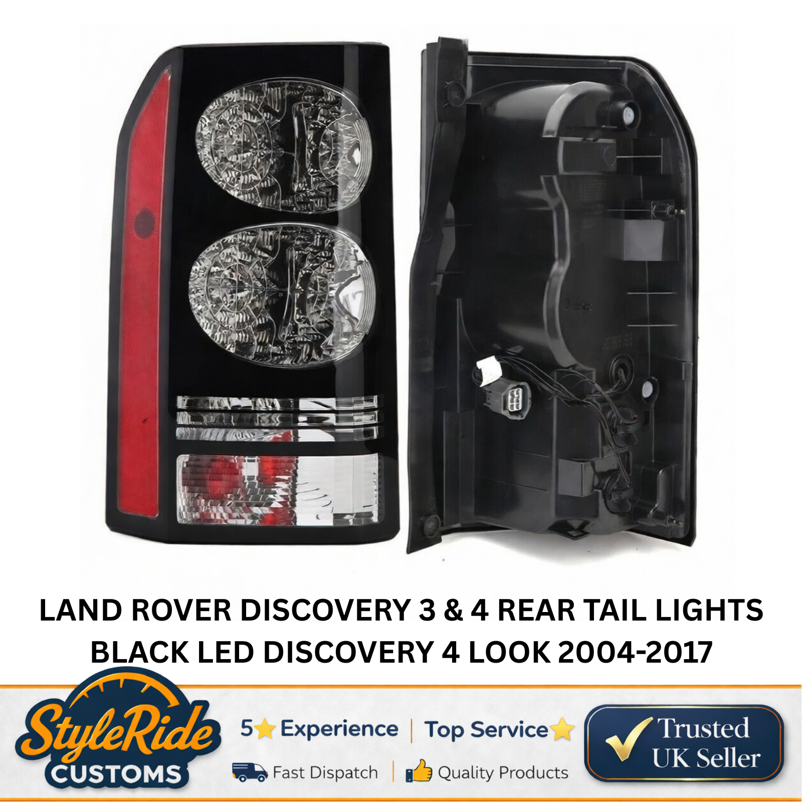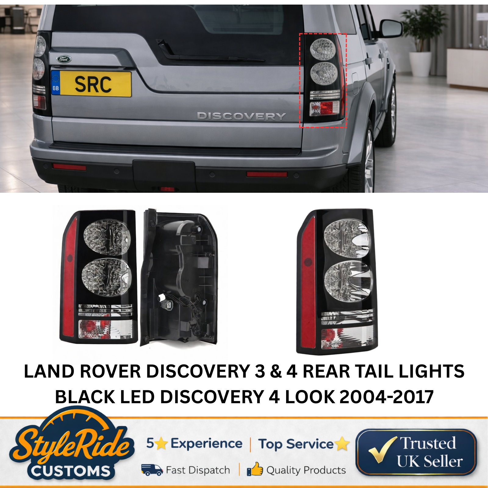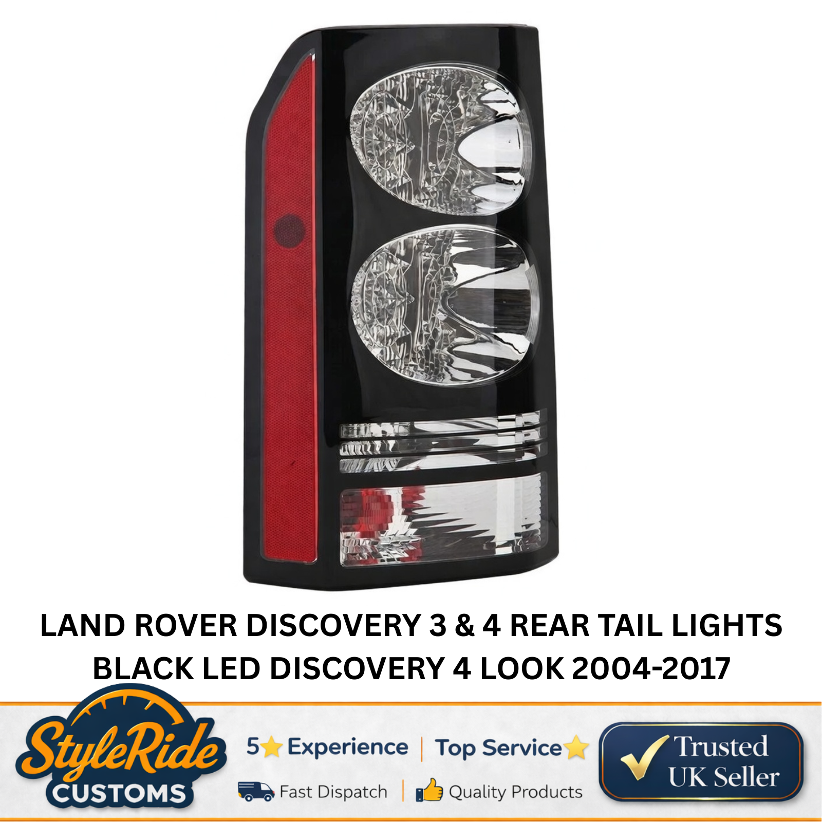 Upgrade the rear lighting of your Land Rover Discovery with these LED tail lights in a sleek black Discovery 4 style design. Suitable for both Discovery 3 and Discovery 4 models, these lights provide a modern appearance with ultra-bright LED performance. Designed as a direct replacement, they are plug-and-play with no coding required.
